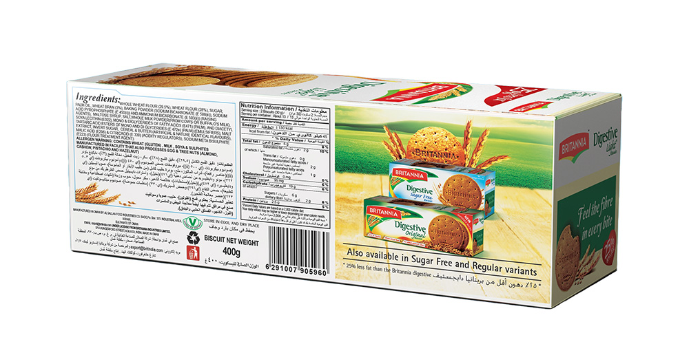 Wheat Flour, Whole Wheat Flour, Sugar, Vegetable Fat (Palm), Wheat Bran, Sodium Bicarbonate (E500(ii)) & Ammonium Bicarbonate (E503(ii)) (Raising Agents), Liquid Glucose, Salt, Malt Extract, Invert Sugar, Malic Acid (E296) (Acidity Regulator), Mono & Diglycerides of Fatty Acids (Palm) (E471) (Emulsifier), Sodium Metabisulphite (E223) (Flour Treatment Agent).